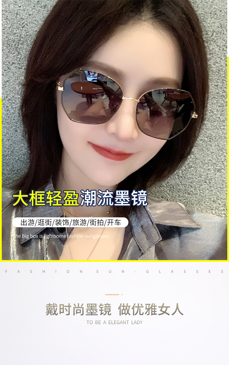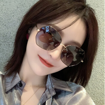 森罗慕彤太阳镜女大框高清偏光墨镜司机眼镜时尚女士眼镜圆脸明星款开车 2212黑金框灰片