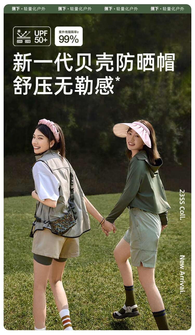 蕉下(beneunder)防晒帽遮阳帽女帽子太阳帽大帽檐防紫外线空顶帽纭际贝壳帽浅米色